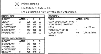 為了避免箱體共振,對(duì)兩側(cè)箱板和上、下面板使用22mm厚的中密度纖維板(MDF),前面板則使用30mm厚的MDF。6塊箱板的內(nèi)表面最好全部貼上4mm厚的鉛皮(但較貴),也可貼上相同厚度的瀝青油毛氈進(jìn)行聲阻尼。在箱板開(kāi)口處應(yīng)仔細(xì)地將阻尼材料剪掉,以免妨礙驅(qū)動(dòng)單元和出聲管的安裝。