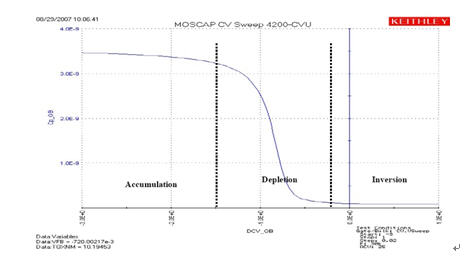 圖2.C-V測(cè)試中獲得的MOSCAP結(jié)構(gòu)的直流偏壓掃描