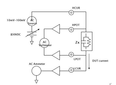 換而言之,這種測(cè)試通過(guò)加載交流電壓然后測(cè)量產(chǎn)生的交流電流、交流電壓和它們之間的阻抗相角,最終測(cè)出DUT的交流阻抗。