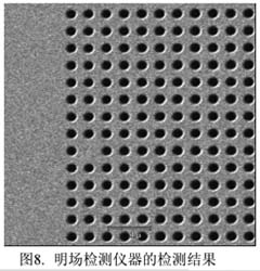 根據(jù)明場(chǎng)檢測(cè)儀器對(duì)通孔刻蝕的檢測(cè)結(jié)果,發(fā)現(xiàn)明場(chǎng)檢測(cè)技術(shù)只能抓住對(duì)通孔未刻蝕開(kāi)的缺陷,而對(duì)于刻蝕過(guò)程中產(chǎn)生的刻蝕不完全缺陷則很難檢測(cè)到。結(jié)果表明,由于此缺陷在通孔內(nèi)太過(guò)深入,探測(cè)器能夠收集到的反射電子較少,信號(hào)很弱,導(dǎo)致明場(chǎng)檢測(cè)技術(shù)無(wú)法正常而有效的檢測(cè)到這類缺陷的存在(如圖8所示)。