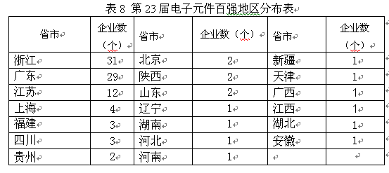 [page]六、電子元件百?gòu)?qiáng)的地區(qū)分布