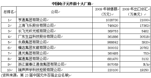 第23屆中國元件百強企業(yè)名單于2010年6月22日公布。從本次百強企業(yè)的評選結果,以及中國電子元件行業(yè)協會(下簡稱中電元協)公布的數據上可以看出,在經歷了全球經濟危機之后,中國電子元件行業(yè)正在穩(wěn)步復蘇,眾多元件企業(yè)正在積極尋求在“后危機時代”的生存和發(fā)展之道。