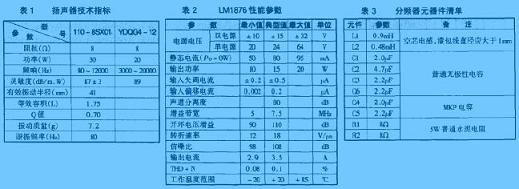 本文介紹的揚聲器均采用防磁揚聲器。高音揚聲器采用上海領(lǐng)先音響儀器公司生產(chǎn)的銀笛牌YDQG4-12型高音揚聲器,該款揚聲器采用了進(jìn)口絲質(zhì)振膜、磁液冷卻系統(tǒng)、全封閉防磁式磁路等一系列Hi-Fi單元采用的技術(shù),使它比常見的低價高音單元擁有更大的功率承受能力,音質(zhì)更細(xì)膩柔美。低音揚聲器則采用了南京電聲股份公司生產(chǎn)的南鯨牌4英寸噴膠紙盆防磁低音揚聲器,型號為110-8SX01。各揚聲器技術(shù)指標(biāo)如表1所示。