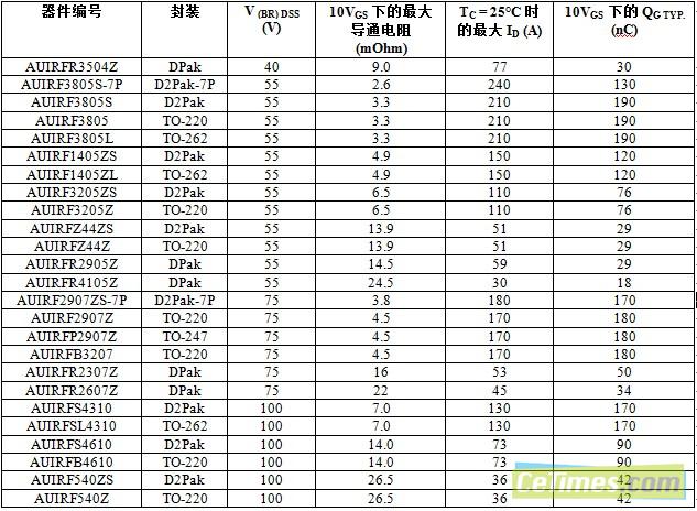 國(guó)際整流器公司 (International Rectifier,簡(jiǎn)稱(chēng)IR) 日前宣布拓展了針對(duì)低導(dǎo)通電阻(RDS(on))應(yīng)用的汽車(chē)用功率 MOSFET 專(zhuān)用系列,包括車(chē)載電源及內(nèi)燃機(jī) (ICE) 、微型混合動(dòng)力和全混合動(dòng)力平臺(tái)上的重載應(yīng)用。