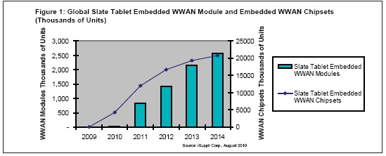 據(jù)iSuppli公司,新興的具備無線通訊功能的消費(fèi)電子設(shè)備旺銷,將為半導(dǎo)體供應(yīng)商創(chuàng)造新的增長機(jī)會(huì),從而刺激用于slate型平板電腦的嵌入無線廣域網(wǎng)(WWAN)芯片組出貨量急劇增長。