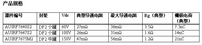 新推出的 AUIRF7640S2、AUIRF7647S2 和 AUIRF7675M2 器件,拓展了 IR 適用于汽車 D 類音頻系統(tǒng)的 DirectFET®2 功率 MOSFET 陣營,并利用低柵極電荷 (Qg) 作出優(yōu)化,來改善總諧波失真 (THD) 和提高效率,而低二極管反向恢復(fù)電荷 (Qrr) 則進(jìn)一步改善了總諧波失真,降低了電磁干擾 (EMI) 。