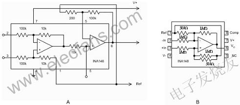 圖1在高壓側電流檢測中,共模電壓是主要問題老式分路檢測電路基于差動放大器,即周圍帶四個電阻來設置增益并提供差動輸入的運算放大器(operationamplifier)。這些電阻使運算放大器能接受超過其電源軌的共模電壓。不過,這也會帶來下面一些負面問題:一是電路必須配置為衰減器,在隨后的運算放大器級中恢復增益,如圖2A中的IC結構圖所示,運算放大器的增益會成倍增大第一個放大器的偏置和漂移量,從而降低整體性能。二是采用高共模電壓差動放大器要增加電阻網(wǎng)絡,以使之在仍然只提供單位增益的同時能夠接受較高的共模電壓。高共模差動放大器帶來的影響在于:運算放大器的噪聲增益與共模衰減成正比,如圖2B所示的差動放大器結構采用了20:1的內部共模衰減,此舉使放大器的偏置、漂移和噪聲都比運算放大器本身擴大了20倍。此外,較大的輸入電阻也會造成較高的噪聲。