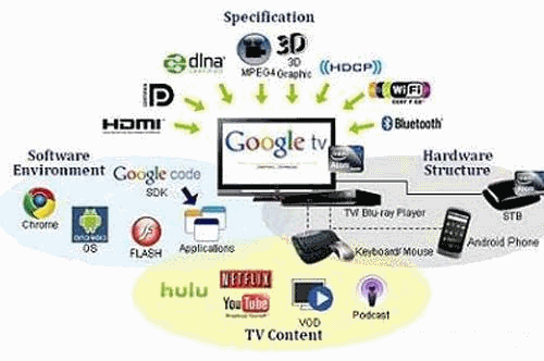 GoogleTV是一個整合計算機(jī)系統(tǒng)、媒體播放與網(wǎng)絡(luò)應(yīng)用的概念型電視平臺,由Google公司主導(dǎo)研發(fā),并且免費開源發(fā)布。GoogleTV的應(yīng)用涵蓋下列領(lǐng)域: