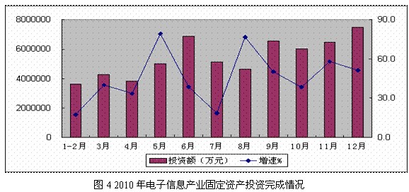 電子信息產(chǎn)業(yè)結(jié)構(gòu)調(diào)整步伐加快。2010年,電子元器件行業(yè)銷售產(chǎn)值分別增長(zhǎng)29.4%和39%,出口交貨值增長(zhǎng)26.2%和41.7%,利潤(rùn) 增長(zhǎng)61%和207.4%,成為拉動(dòng)全行業(yè)增長(zhǎng)的主要力量;軟件產(chǎn)業(yè)保持31%的速度增長(zhǎng),占電子信息產(chǎn)業(yè)的比重達(dá)到18%。產(chǎn)業(yè)鏈不斷向上延伸,多條 12英寸集成電路生產(chǎn)線建成投產(chǎn),與發(fā)達(dá)國(guó)家差距逐步縮??;多條液晶面板生產(chǎn)線已投產(chǎn),彌補(bǔ)了高世代生產(chǎn)線的空白。