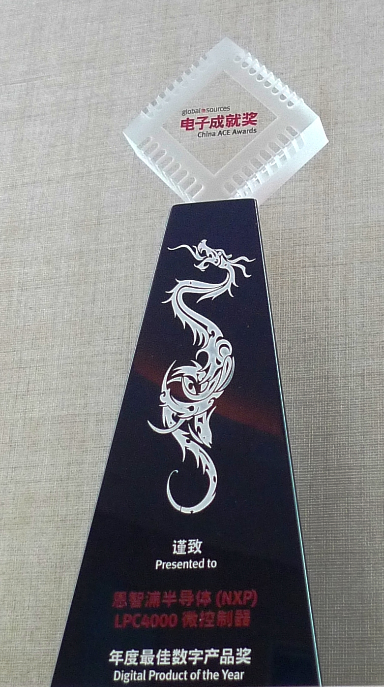 很高興為大家?guī)斫輬?bào)!恩智浦半導(dǎo)體于去年11月推出了全球首次采用ARM CortexTM-M4和Cortex-M0雙核架構(gòu)的非對稱數(shù)字信號控制器:LPC4000系列微控制器,近日連獲兩項(xiàng)業(yè)內(nèi)殊榮,“2011中國年度電子成就獎(ACE Award)最佳數(shù)字產(chǎn)品獎”,以及“年度產(chǎn)品獎”。