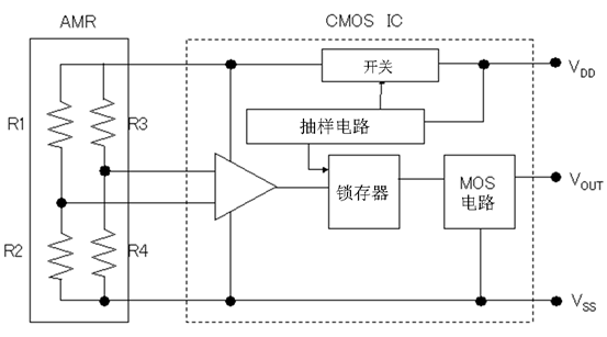(*1)AMR(Anisotropic-Magneto-Resistance)各向異性磁阻效應(yīng)。各向異性是指具有方向性,在這里是指可以檢測出任意方向的磁力。