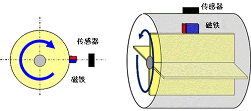 通過讓傳感器靠近和遠(yuǎn)離磁鐵來控制電路的方法,較為普遍的就是使用在蓋或門的開關(guān)部分,比較容易想象。若在磁鐵上安裝齒輪或羽毛,還能夠作為液體或氣體的流量計(jì)使用(如圖6)。另外還可以用來檢測可脫卸的零件在使用時(shí)的安裝位置是否正確。