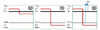 圖1由于電容距離信號太遠以至于不能連接斷層而導致的EMC問題