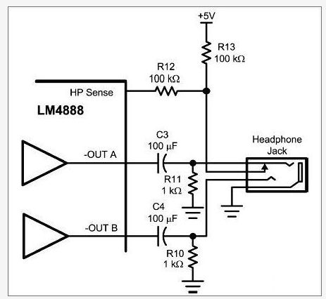 基于每個耳機檢測電路端口設(shè)計會採用不同要求,因此,該聲頻子系統(tǒng)提供兩個獨立的耳機(HP)控制輸入接腳。耳機的允許輸入可啟動SE輸出耳機模式和關(guān)閉BTL輸出模式。耳機感應(yīng)檢測輸入需要用一個常規(guī)立體聲耳機插孔配合一起使用。剩余的HP邏輯輸入,能允許使用一個標(biāo)準(zhǔn)邏輯電平(Logic Level)來控制。