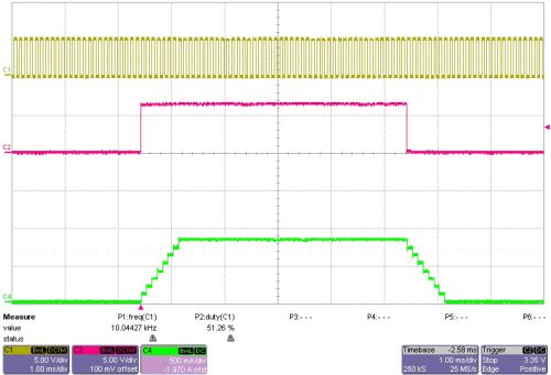 圖 2 10 kHz 時(shí)鐘頻率時(shí)的 LED 開啟和關(guān)閉情況