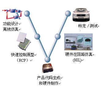 汽車電子產(chǎn)品軟件開發(fā)流程是“V”形開發(fā)流程。“V”形開發(fā)流程分為五個(gè)階段,即功能設(shè)計(jì)、原型仿真、代碼生成、硬件在回路仿真-HIL、標(biāo)定。