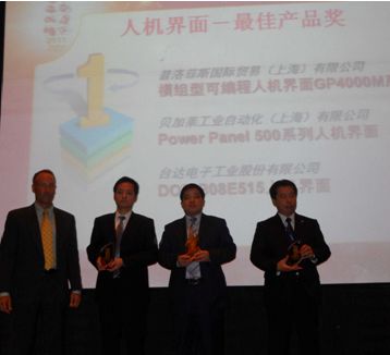 11月2日,在上海工博會(huì)期間召開的“創(chuàng)新 未來”2011(第七屆)CEC年度最佳產(chǎn)品獎(jiǎng)評(píng)選頒獎(jiǎng)典禮上,臺(tái)達(dá)人機(jī)“高手”——DOP-B08E515以其高分辨率、高容量、高畫質(zhì)、高速度、高抗干擾能力等多項(xiàng)優(yōu)秀技術(shù)性能指標(biāo)在百余自動(dòng)化產(chǎn)品的激烈角逐中脫穎而出,榮獲“2011年度最佳產(chǎn)品獎(jiǎng)”!