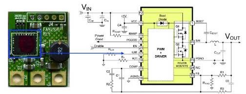 對于更大的電流,為了讓熱量擴散到更大的表面上,多相的分立式解決方案(如2-3個DrMOS器件) 是首選。另一個權衡是開關頻率―如果不是因EMI要求或空間限制而預先確定 (利用更高的開關頻率來減小無源元件的尺寸),更低的開關頻率有助于降低開關損耗,并最終降低溫度。