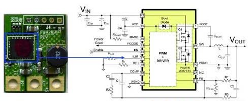 2.上述帶驅動器和MOSFET的分立式解決方案也備有8x8mm或6x6mm MLP封裝的MCM(多芯片 模塊)。這些DrMOS(DriverMOS)產(chǎn)品系列包括 8x8mm產(chǎn)品FDMD87xx和6x6mm產(chǎn)品FDMF67xx,可滿足不同的設計要求。而評估板則可協(xié)助設計人員熟悉應用,并測試性能以便與分立式解決方案相比較(圖5)。