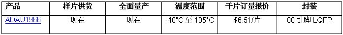 ADAU1966已經(jīng)通過AEC-100汽車應(yīng)用認證,工作溫度范圍為-40° C至+105° C。它還提高SPI/I2C端口,允許外部微控制器調(diào)節(jié)音量,并以+/-3°C的精度讀取芯片溫度。