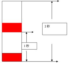 假設(shè)落料秤從開(kāi)啟電磁閥到落到袋里大約有2s的時(shí)間。實(shí)際切袋速度為每分30袋到120袋,以每分60袋來(lái)算控制,控制過(guò)程如圖4所示,左邊為下料信道,在設(shè)定速度為60袋時(shí)需先打開(kāi)電磁閥,等即將落到底部時(shí)啟動(dòng)拉模及封切。