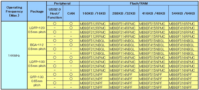 高性能產(chǎn)品組:MB9B510R/410/310/100 系列 (64款產(chǎn)品)