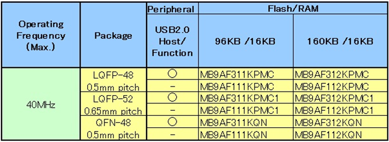 基本產(chǎn)品組:MB9A310K/110系列
