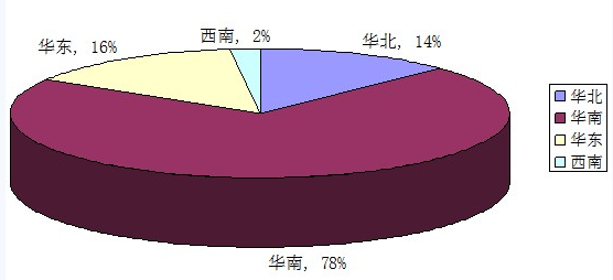慧聰電子市場檢測數(shù)據(jù)顯示,以華北、華南、華東、西南四個主要地區(qū)的求購信息分布,根據(jù)結(jié)果表明,華南作為我國的電子信息產(chǎn)業(yè)基地,擁有著絕大部分的采購需求,占比高達(dá)78%,其次依次為華東、華北和西南地區(qū)。
