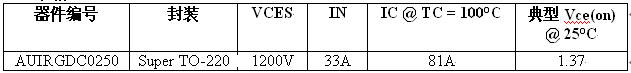 AUIRGDC0250:IR推出優(yōu)化的車用1200V IGBT