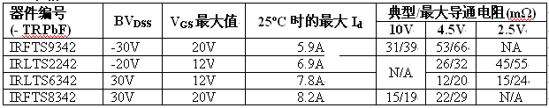 全新的功率MOSFET具備極低的導通電阻(RDS(on)),能夠大幅降低傳導損耗。新產(chǎn)品可以作為N及P通道配置里的20V或30V器件,最大柵極驅(qū)動從12Vgs到20Vgs不等。