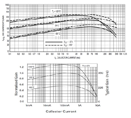事實(shí)上,晶體管將與其組件進(jìn)行配對(duì)(MMBT3904用于3906,MMBT2907用于2222)。這兩個(gè)不同的配對(duì)僅用于比較。這些器件還具有更高的電流和更高的hfe, 如FMMT618/718對(duì),其在6A電流時(shí)具有100 的hfe(請(qǐng)參見(jiàn)圖2)。與集成驅(qū)動(dòng)器不同,分立器件是更低成本的解決方案,且有更高的散熱和電流性能。