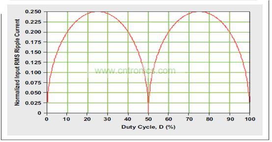 圖5 標(biāo)準(zhǔn)化輸入RMS紋波電流為占空比的函數(shù)