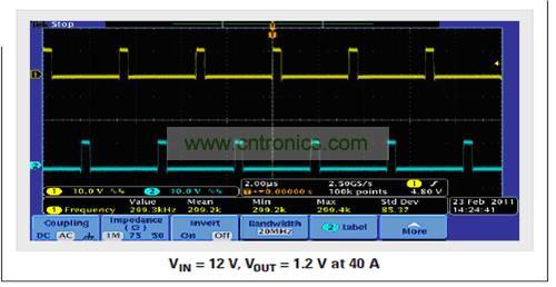 圖11 40-A 負(fù)載1.2-V 輸出Vout 啟動(dòng)圖