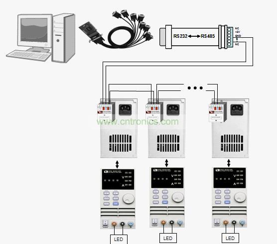LED老化測(cè)試系統(tǒng),由直流電源與控制軟件搭建而成,具體如下圖所示: