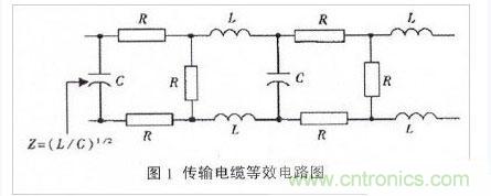 不難理解,信號無論借助何種介質(zhì)傳輸,都會在傳輸過程中產(chǎn)生衰減。我們可以把RS-485傳輸電纜看成是由若干個電阻、電感和電容聯(lián)合組成的等效電路,如圖1所示。