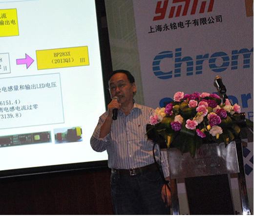 美芯晟科技(北京)有限公司總經理程寶洪通過講解《美芯晟LED照明驅動解決方案》,介紹其自主研發(fā)的LED照明驅動產品系列:AC-DC系列、DC-DC系列以及背光照明系列產品,并重點介紹了MT7930、MT795X系列和MT7281,具有高PFC(高于0.9)、高效率、高精度的相關特點。