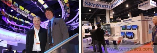 (左圖為市平板顯示行業(yè)協(xié)會(huì)副秘書(shū)長(zhǎng)梁毅與Inter公司的victor合影;右圖為中國(guó)企業(yè)創(chuàng)維展位)