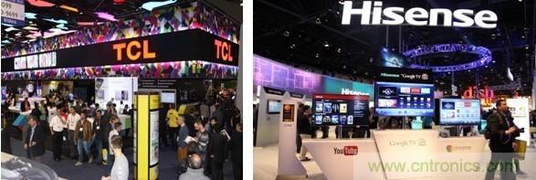 (圖為美國(guó)CES展會(huì)現(xiàn)場(chǎng)的中國(guó)企業(yè)TCL、海信展位)