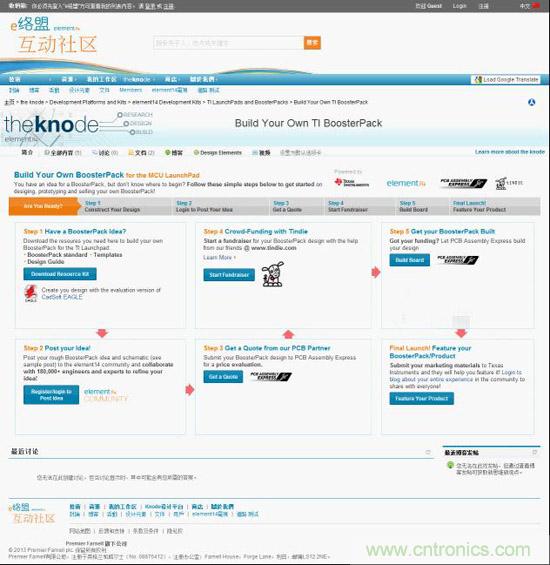 【導(dǎo)讀】e絡(luò)盟社區(qū)與TI攜手合作推出專屬網(wǎng)站平臺——全新BoosterPack擴(kuò)展板,無論是進(jìn)行產(chǎn)品設(shè)計(jì)、籌集資金、原型設(shè)計(jì)、產(chǎn)品制造還是產(chǎn)品推廣,開發(fā)人員都可通過這個(gè)專屬網(wǎng)站與行業(yè)領(lǐng)先合作伙伴進(jìn)行溝通合作。