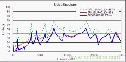 圖6:ZR*18(嘯叫抑制產(chǎn)品)和GRM18(通用產(chǎn)品)的嘯叫等級比較