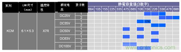 GCJ系列、KCM/KC3系列的125°C對(duì)應(yīng)產(chǎn)品一覽如圖13、圖14、圖15所示。