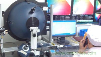 圖2:美國藍菲光學(Labsphere)的積分球(左)用于晶科電子(廣州)有限公司的研發(fā)中