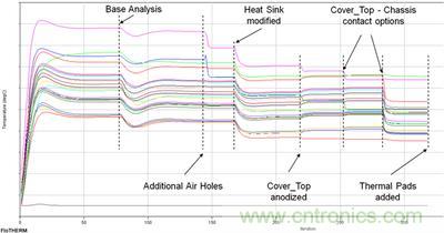 為提升整體設計做出調(diào)整,如產(chǎn)品的機械、電氣和 EMC 性能間的協(xié)調(diào)以及溫度限制、可制造性或成本等其他限制條件,有利于實現(xiàn)連續(xù)改進。對每個學科而言,這些改進可以看作是對基礎設計的完善。在進行熱設計時,則可視為對監(jiān)控點溫度的調(diào)整,從而與將用作測量物理原型的傳感器的位置相匹配。