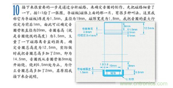 把繞好的音圈放入磁隙中,音圈正好在磁隙寬度的中間,音圈的卷高也在導磁板厚度的中心是由問題的,著就等于音圈已經(jīng)打底了。這是音圈只能向上運動,不能向下運動,為什么做成這樣呢?我來解釋一下前面的那個問題。就是我把音圈總高從12.5mm加到了14.5mm的原因,通過計算,若我把音圈總高做成12.5mm,從音圈骨架1mm處向上繞線,那么當3.5mm的音圈卷高定位在導磁板厚度的中心。音圈離打底還有2mm,減去1mm的向下行程,還有1mm的余地?,F(xiàn)在我的做法是把音圈里打底還有2mm的高度在音圈上用線事先標好,這么做事為了能把音圈卷高準確定位在導磁板的正中心。