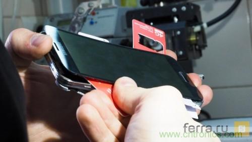 三星在上面使用了比較特殊的膠水來將其與機身緊緊粘合在一起,先用工具卡住。