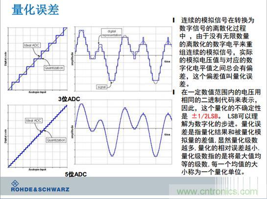 我們復(fù)習(xí)一下示波器的基本原理,把模擬信號(hào)變成影響點(diǎn)的各個(gè)。在數(shù)字空間里,永遠(yuǎn)都有0和1,每一個(gè)0和1代表的電壓的大小是多少呢?通常是8位的0和1組成一個(gè)電壓。電阻里的電源的電壓是400伏,還是低壓5毫伏,都可以進(jìn)行量化。每一個(gè)0和1代表的電壓是多少呢?這個(gè)是最小有利的比特位。特殊講,就是示波器的每一個(gè)路徑,示波器乘1111111,變成了11111110,最后一位從1變成0的跳變,代表了電壓的大小是多少呢?是取決于平時(shí)用示波級(jí)的量程。如果示波器1伏每格的時(shí)候,你0和1的跳變大約是30毫伏的變化。這個(gè)是示波器外邊的電壓的變化,30毫伏的電壓對(duì)示波器是沒(méi)有影響的,示波器感覺(jué)不到。這個(gè)就像平時(shí)用1厘米的刻度尺來(lái)測(cè)量頭發(fā)的時(shí)候發(fā)現(xiàn)無(wú)法測(cè)量,這個(gè)是基本的道理。