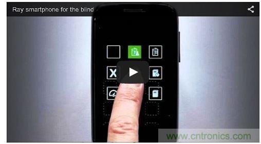 以色列新創(chuàng)公司Project Ray致力于為視障者設(shè)計實用的移動終端,打造號稱全球唯一的“整合因特網(wǎng)服務(wù)多用途輔具”──包括Ray應(yīng)用程序以及Ray系列 Android 平臺特制手機。Ray系列手機在2012年就已問世,為Project Ray與高通(Qualcomm)以及以色列視障/身障者中央圖書館(Central Library for the Blind, Visually Impaired, and Handicapped)的合作成果。
