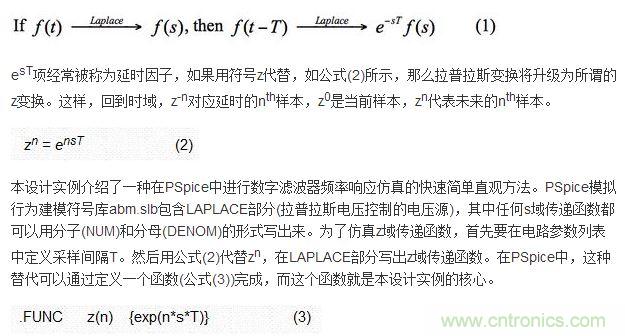 舉例來(lái)說(shuō),如果用分子或分母形式將z(-10)寫下來(lái),PSpice將用e-10sT替代z(-10) (s是LAPLACE部分使用的拉普拉斯變量)。公式(3)可以放在包含文件中,或更方便地放在新原理圖模板FUNCTIONS中。