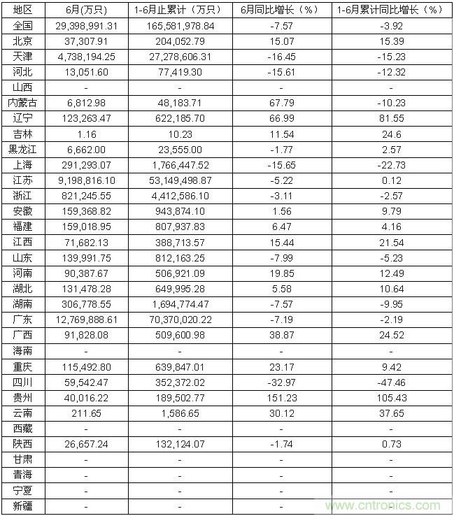 【導讀】據統(tǒng)計顯示,2015年1-6月止累計中國電子元件產量165,581,978.84萬只,同比下降3.92%。2015年6月中國電子元件產量同比下降7.57%,為29,398,991.31萬只。