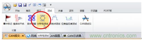 5. 為了精準(zhǔn)測試CANH+CANL的電壓值,需要使用對稱性測試功能,如圖6所示,在“測試”中點(diǎn)擊啟動“對稱性測試”。
